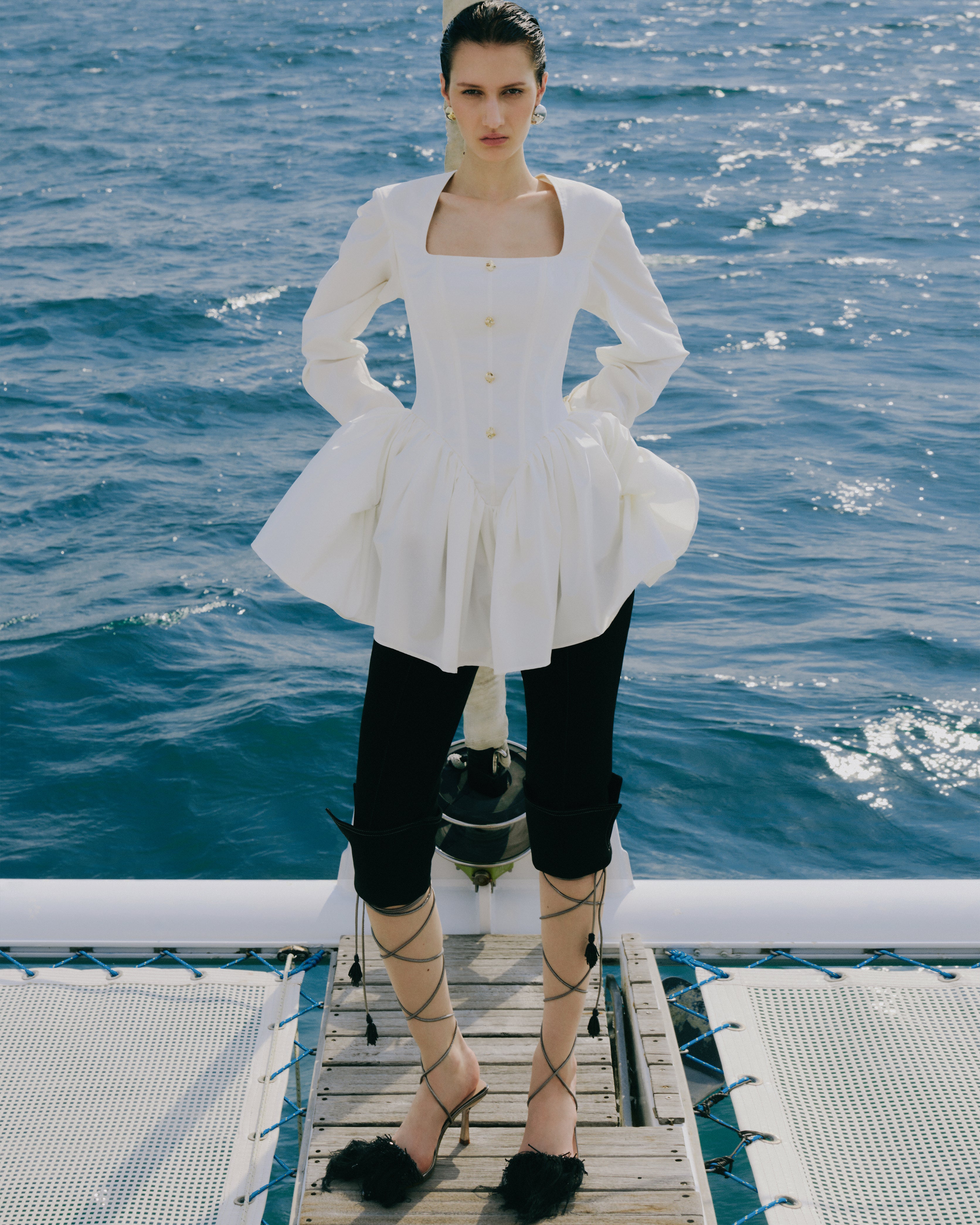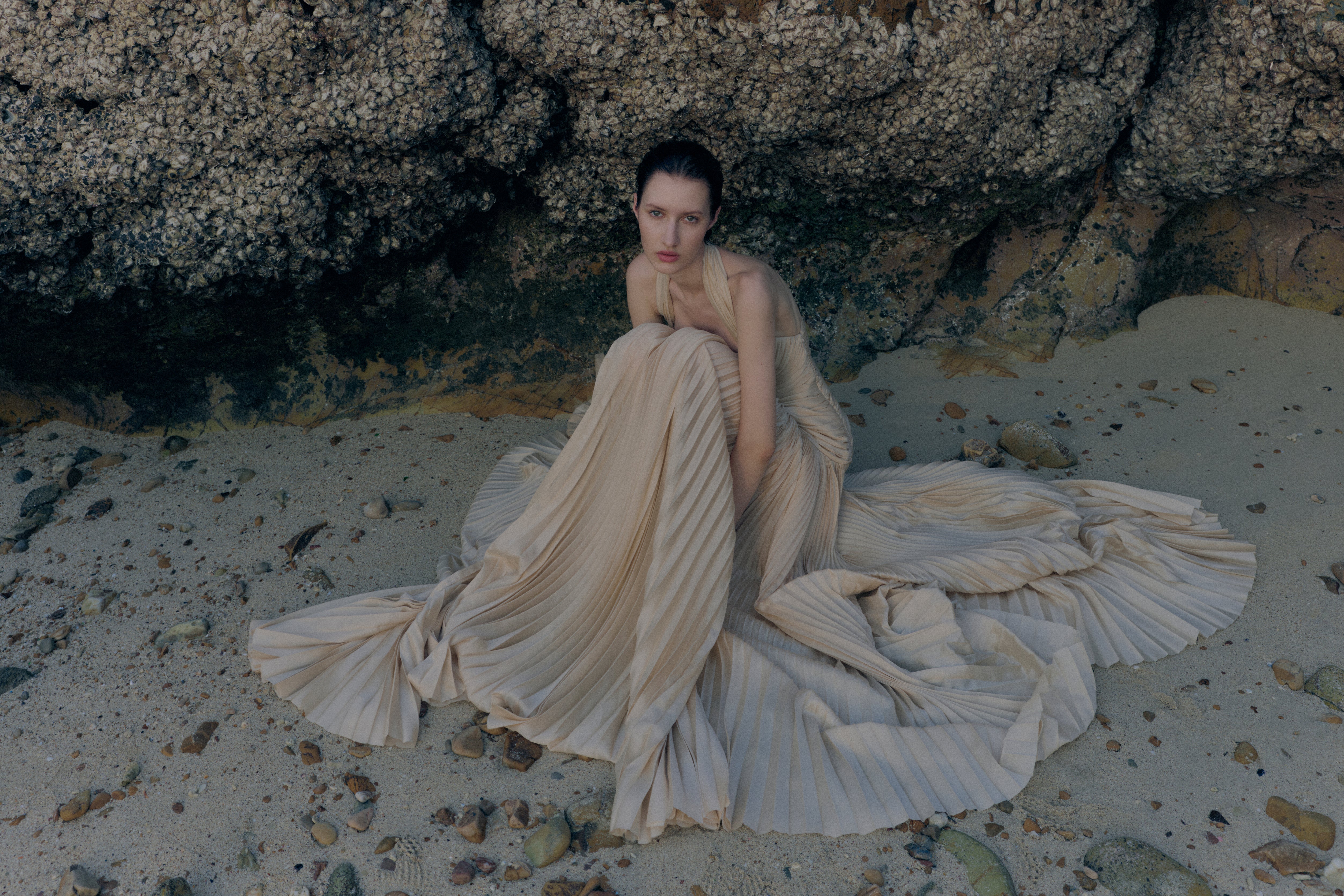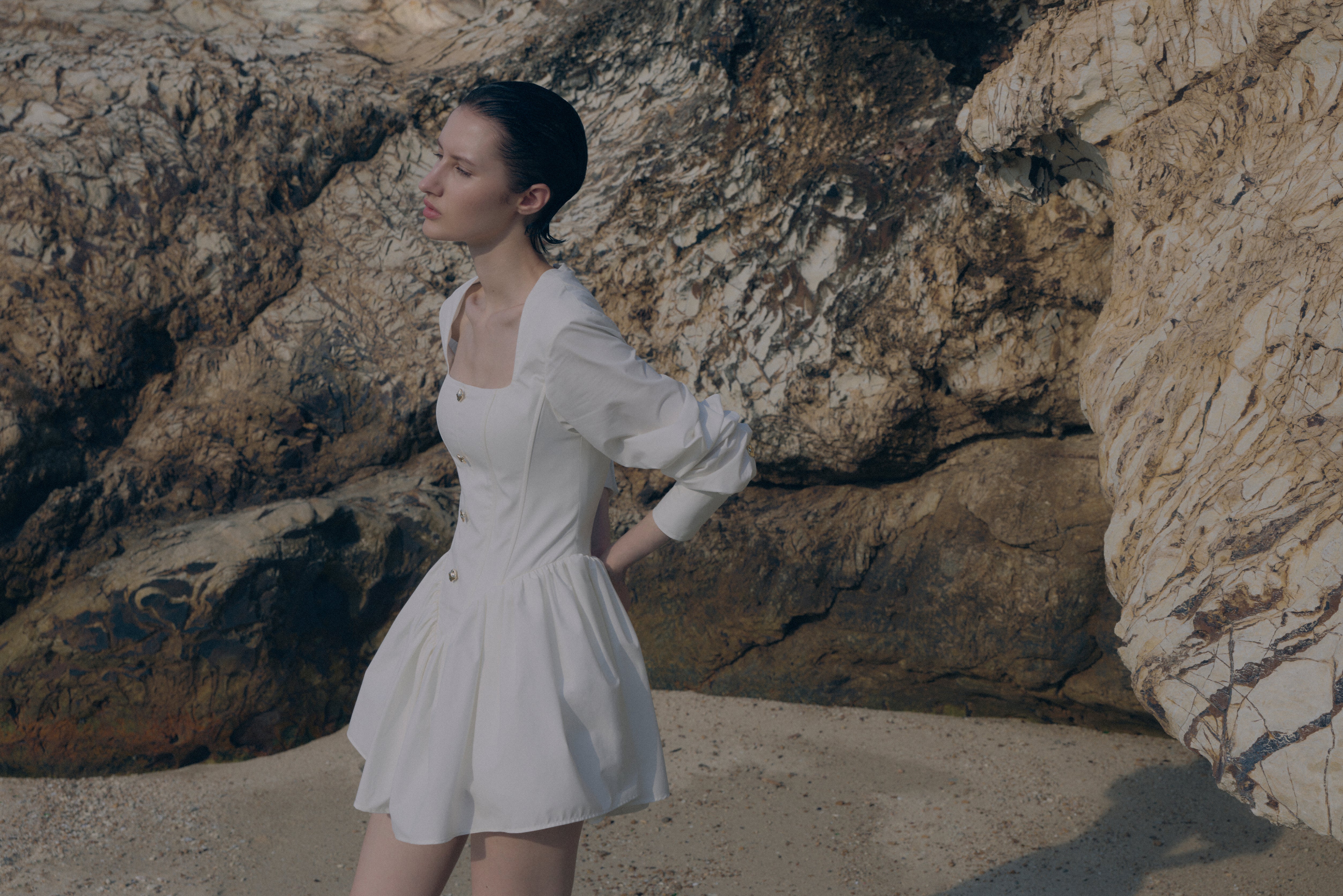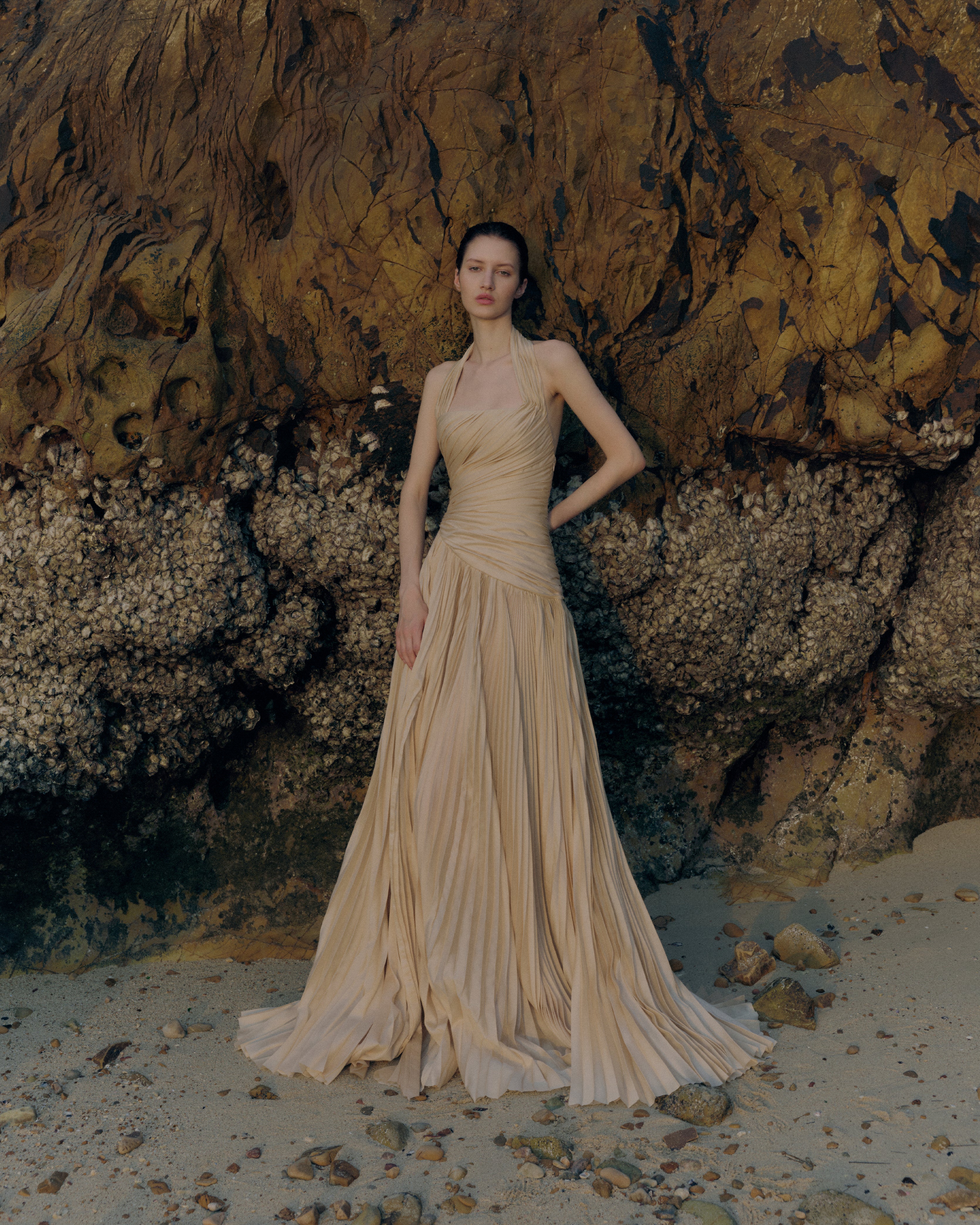 An Italian summer unfolds with soft mornings and golden sea-salted evenings. Women wander barefoot along sun-warmed beaches while silk-cotton drifts on the breeze like a whispered memory.